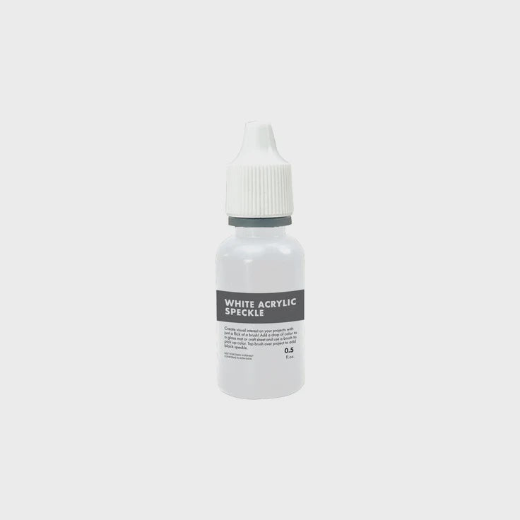 The 0.5 oz bottle of White Acrylic Speckle Ink packs a visual punch in a small package. Just a drop is all it takes—use a brush to pick up color and tap it over your project for a little speckle texture.